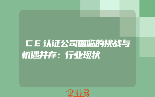 - CE认证公司面临的挑战与机遇并存:行业现状