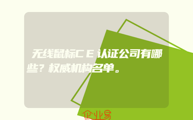 - 无线鼠标CE认证公司有哪些?权威机构名单。