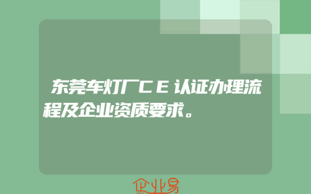 - 东莞车灯厂CE认证办理流程及企业资质要求。