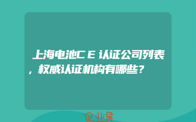 - 上海电池CE认证公司列表,权威认证机构有哪些?