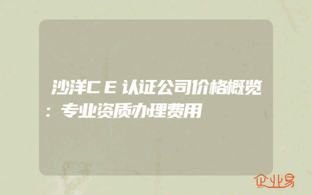- 沙洋CE认证公司价格概览:专业资质办理费用解析一、引言在全球化日益盛行的今天,企业为了拓展国际市场,经常需要进行各类认证,其中CE认证是欧洲市场准入的重要门槛。沙洋CE认证公司作为专业资质办理机构,其服务费用和办理流程备受关注。本文将详细解