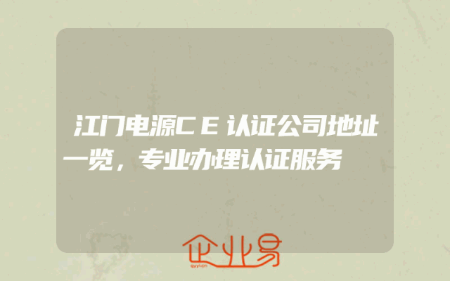 - 江门电源CE认证公司地址一览,专业办理认证服务