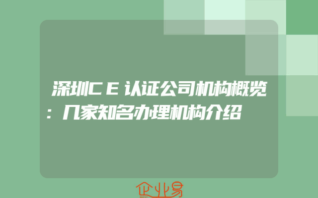 - 深圳CE认证公司机构概览:几家知名办理机构介绍