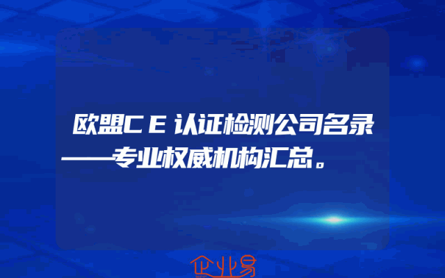 - 欧盟CE认证检测公司名录——专业权威机构汇总。