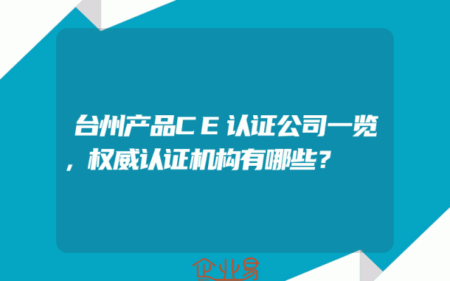 - 台州产品CE认证公司一览,权威认证机构有哪些?