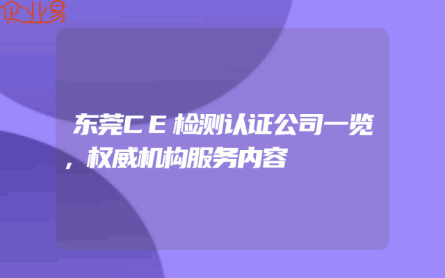 - 东莞CE检测认证公司一览,权威机构服务内容