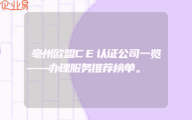 - 亳州欧盟CE认证公司一览——办理服务推荐榜单。