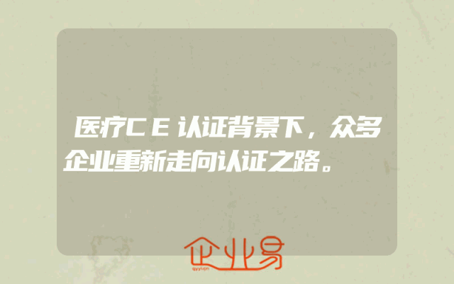 - 医疗CE认证背景下,众多企业重新走向认证之路。