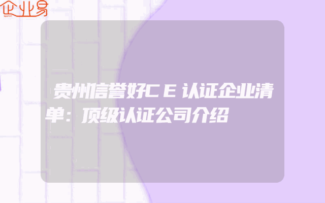- 贵州信誉好CE认证企业清单:顶级认证公司介绍