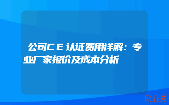 - 公司CE认证费用详解:专业厂家报价及成本分析