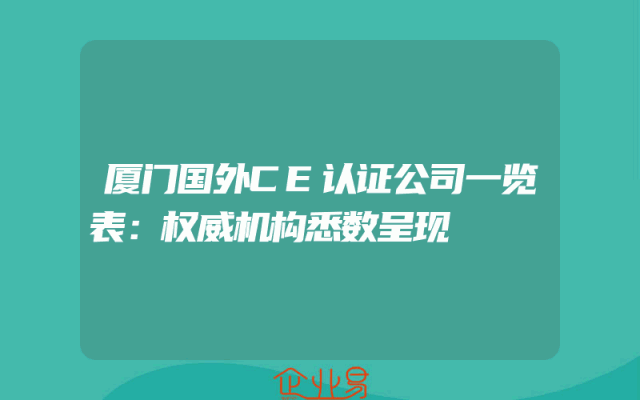 - 厦门国外CE认证公司一览表:权威机构悉数呈现