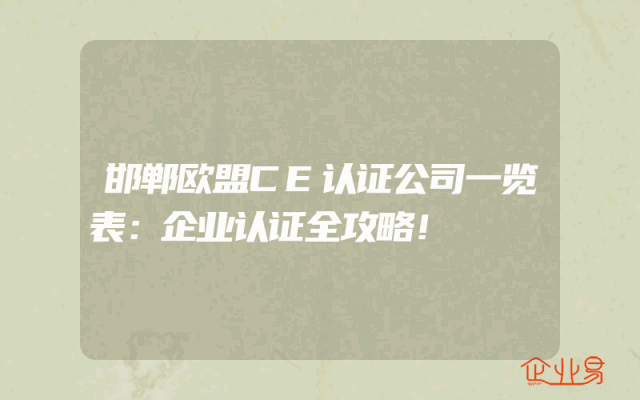 - 邯郸欧盟CE认证公司一览表:企业认证全攻略!