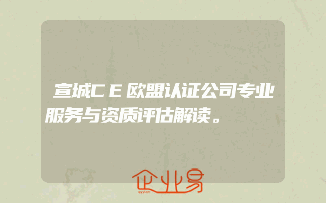 - 宣城CE欧盟认证公司专业服务与资质评估解读。