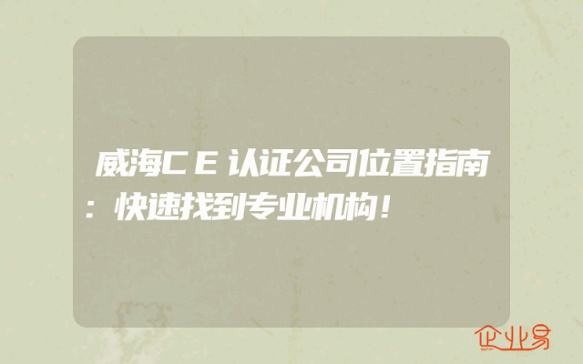 - 威海CE认证公司位置指南:快速找到专业机构!