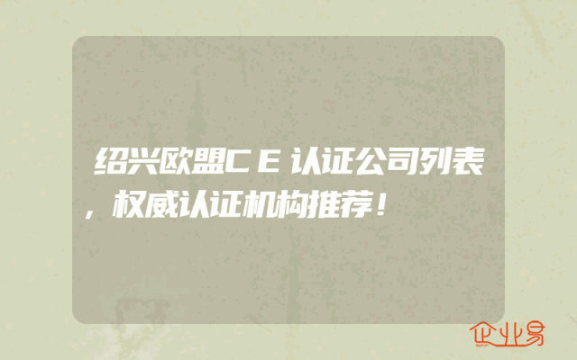 - 绍兴欧盟CE认证公司列表,权威认证机构推荐!