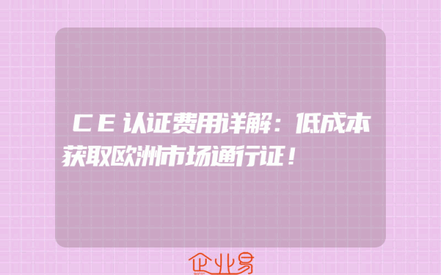 - CE认证费用详解:低成本获取欧洲市场通行证!