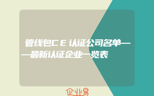 - 管线包CE认证公司名单——最新认证企业一览表