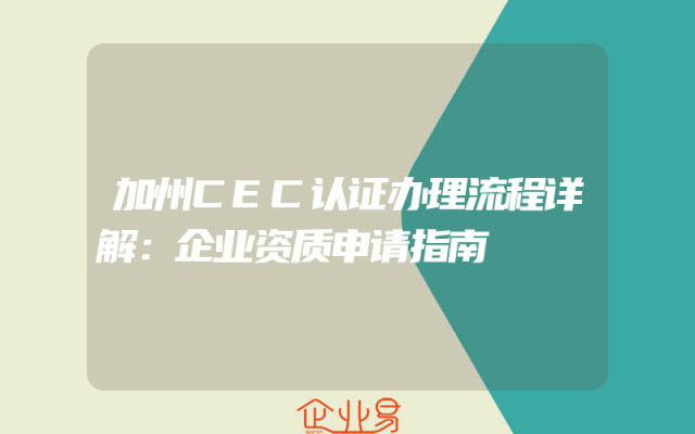 - 加州CEC认证办理流程详解:企业资质申请指南