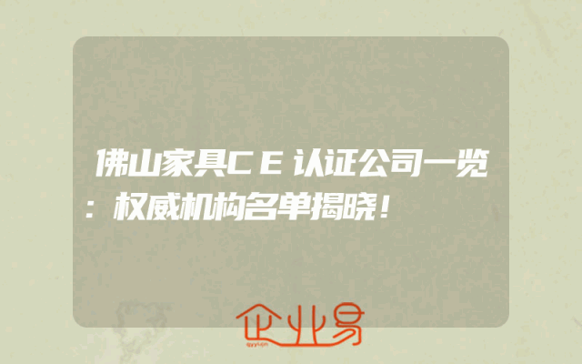 - 佛山家具CE认证公司一览:权威机构名单揭晓!