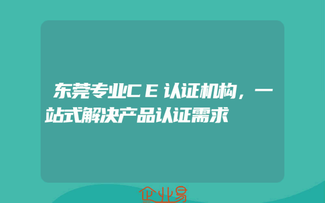 - 东莞专业CE认证机构,一站式解决产品认证需求