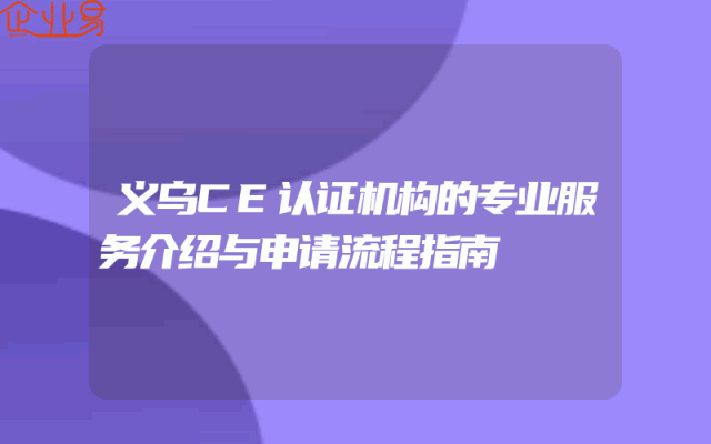 - 义乌CE认证机构的专业服务介绍与申请流程指南