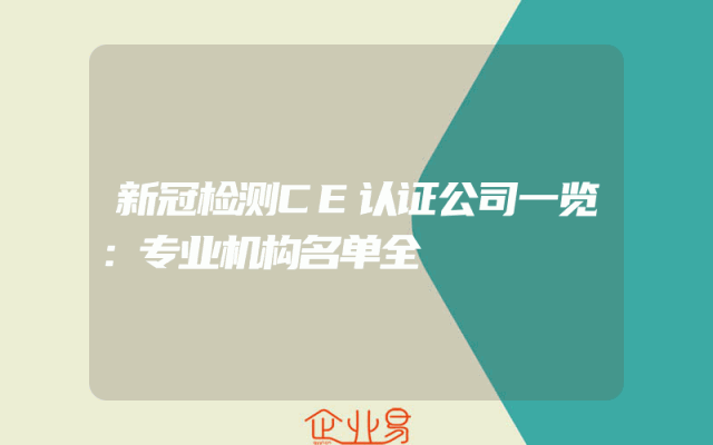 - 新冠检测CE认证公司一览:专业机构名单全
