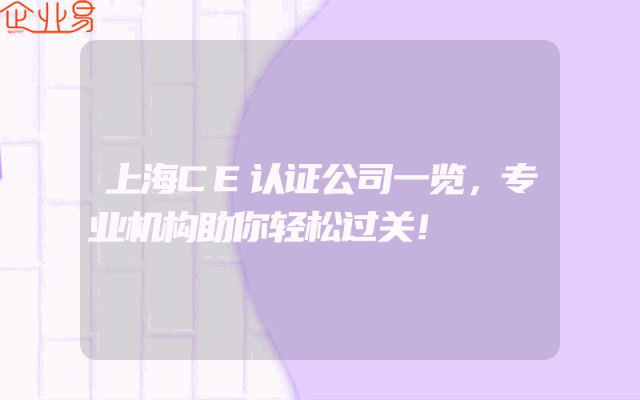 - 上海CE认证公司一览,专业机构助你轻松过关!