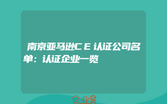 - 南京亚马逊CE认证公司名单:认证企业一览