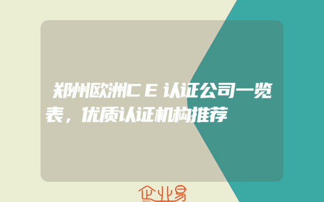 - 郑州欧洲CE认证公司一览表:优质认证机构推荐一、引言随着全球化的发展,企业出口产品至欧洲市场的需求日益增长。在欧洲市场,CE认证作为一种重要的产品安全认证,对于产品的顺利进入和市场拓展具有至关重要的作用。在郑州,众多企业面临着如何选