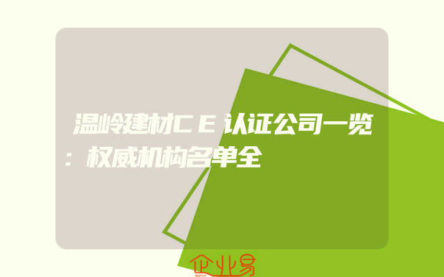 - 温岭建材CE认证公司一览:权威机构名单全