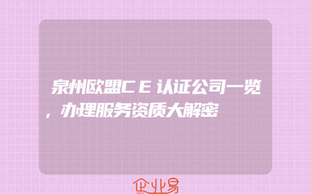 - 泉州欧盟CE认证公司一览,办理服务资质大解密