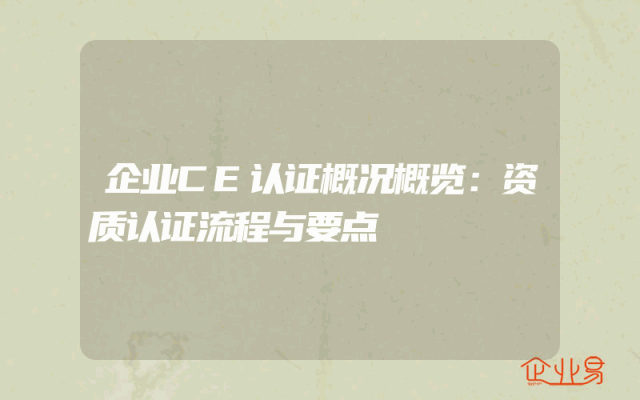 - 企业CE认证概况概览:资质认证流程与要点
