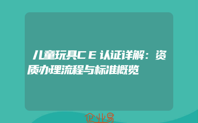 - 儿童玩具CE认证详解:资质办理流程与标准概览