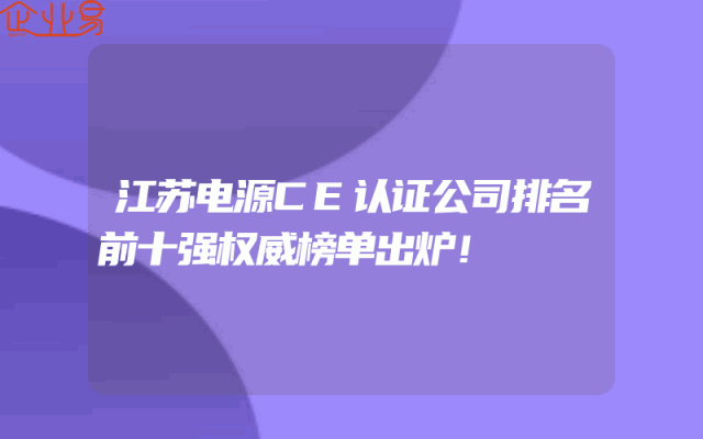 - 江苏电源CE认证公司排名前十强权威榜单出炉!