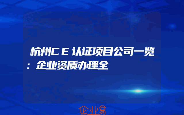 - 杭州CE认证项目公司一览:企业资质办理全