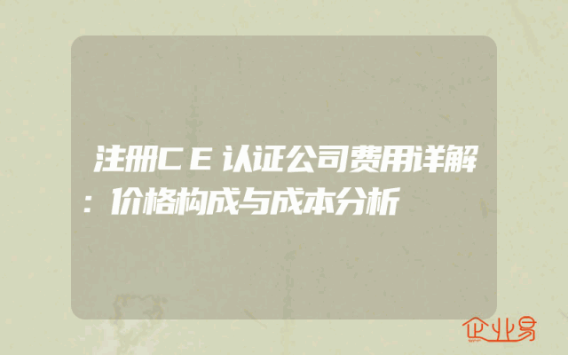 - 注册CE认证公司费用详解:价格构成与成本分析