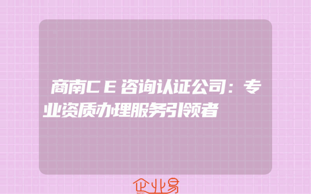 - 商南CE咨询认证公司:专业资质办理服务引领者