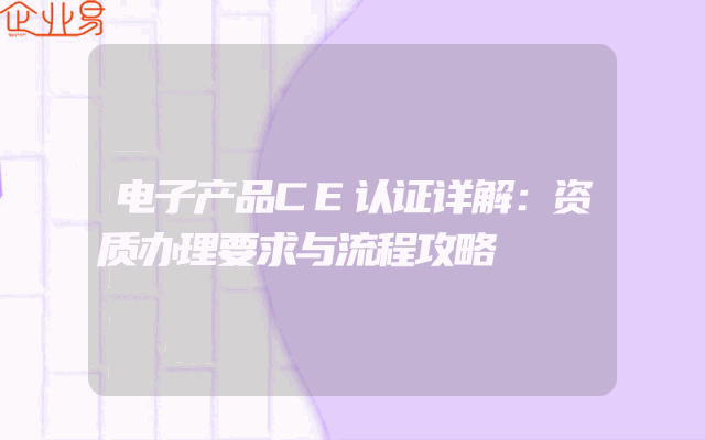 - 电子产品CE认证详解:资质办理要求与流程攻略