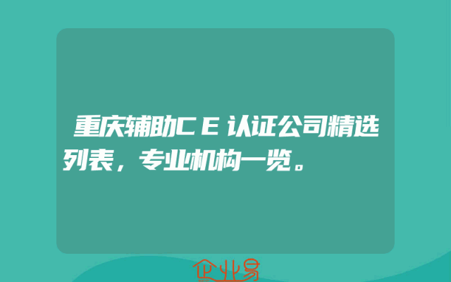 - 重庆辅助CE认证公司精选列表,专业机构一览。