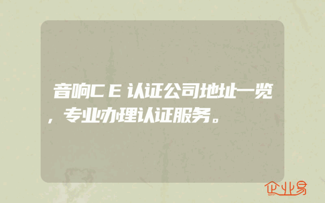 - 音响CE认证公司地址一览,专业办理认证服务。