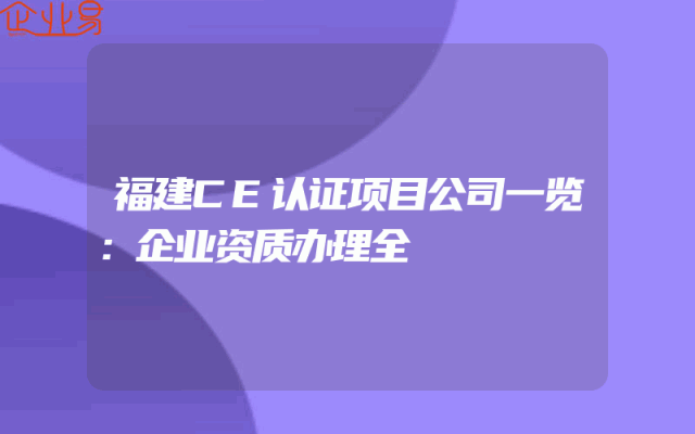 - 福建CE认证项目公司一览:企业资质办理全