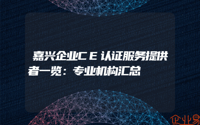 - 嘉兴企业CE认证服务提供者一览:专业机构汇总