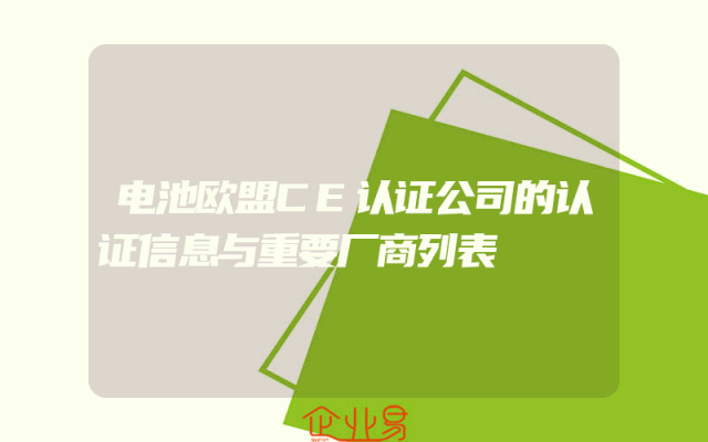 - 电池欧盟CE认证公司的认证信息与重要厂商列表