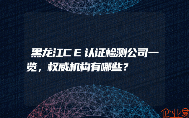 - 黑龙江CE认证检测公司一览,权威机构有哪些?