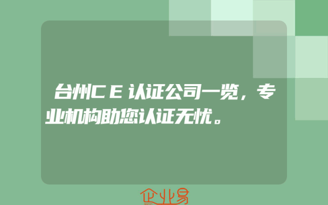 - 台州CE认证公司一览,专业机构助您认证无忧。
