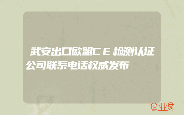 - 武安出口欧盟CE检测认证公司联系电话权威发布