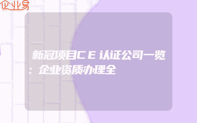 - 新冠项目CE认证公司一览:企业资质办理全