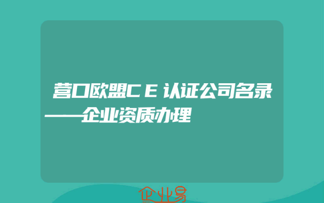 - 营口欧盟CE认证公司名录——企业资质办理
