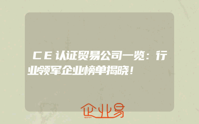 - CE认证贸易公司一览:行业领军企业榜单揭晓!