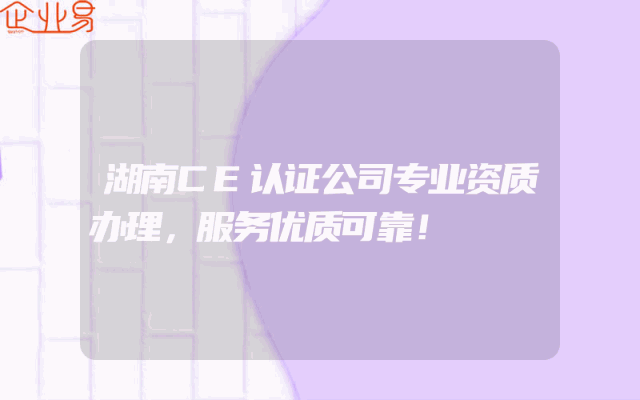 - 湖南CE认证公司专业资质办理,服务优质可靠!一、引言在日益激烈的市场竞争中,企业对于资质办理的需求愈发强烈。特别是在湖南地区,众多企业寻求专业资质办理服务,以提升自身竞争力。这其中,湖南CE认证公司以其专业资质办理服务脱颖而出,赢得了广大企